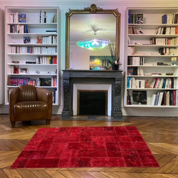 Ce carpet patchwork rouge fait parti de notre collection de tapis modernes bien que nous nous soyons servis de pièces anciennes pour le fabriquer. En plus de donner une seconde vie à des tapis anciens, nous les modernisons en les teintant et les assemblant pièces par pièces. Ce tapis est unique et sa belle taille lui permet de s’incorporer dans n’importe quel intérieur.