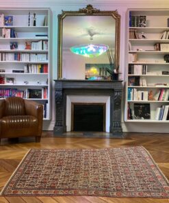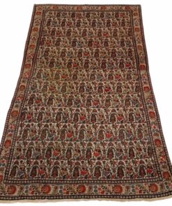 Ce tapis Farahan a été tissé au 19ème siècle autour de 1880. Ce type de tapis est solide et décoratif. Dessin sobre et élégant avec motif Boteh, son format est idéal pour un salon, un bureau ou une chambre. Les teintures sont végétales et il ira aussi bien dans un décor moderne ou classique.