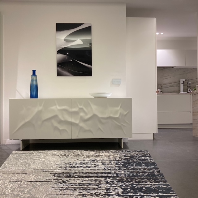 Tapis moderne et design il est entièrement noué à la main. Le fond est en laine et les motifs en fibranne ce qui lui donne un joli relief. Pièce unique de notre collection, il se fondra dans votre intérieur.