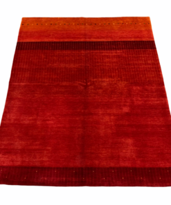 Tapis moderne rouge orange de belle taille. Tissage 100% fait main, laine rouge et soyeuse, il apporte luminosité et élégance incomparable dans n’importe quel endroit de la maison. Il faut à peu près 8 mois de tissage pour sa réalisation.
